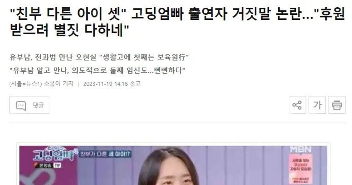 “친부 다른 아이 셋” 고딩엄빠 출연자 거짓말 논란
