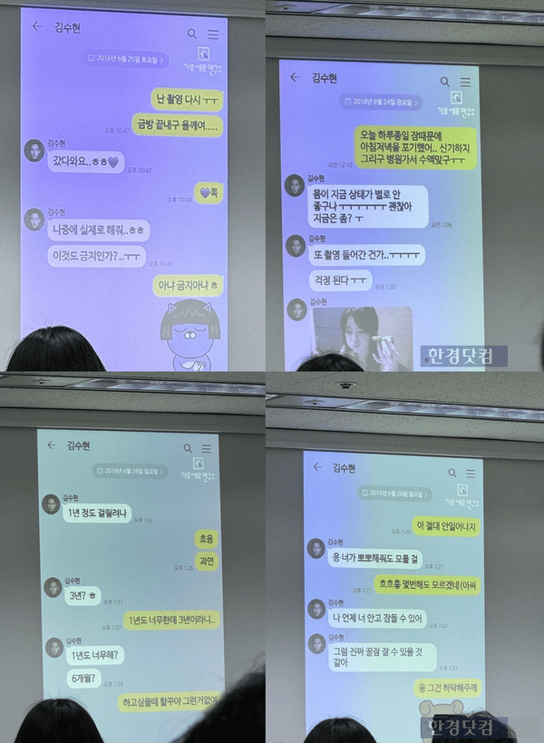 이와 함께 부지석 변호사는 고인과 김수현이 2016년 나눈 메시지를 공개했다. 포렌식을 통해 메시지 원본을 보유 중이고, 개인정보 보호를 위해 카톡 메시지를 그대로 재구성했다고 설명했다.